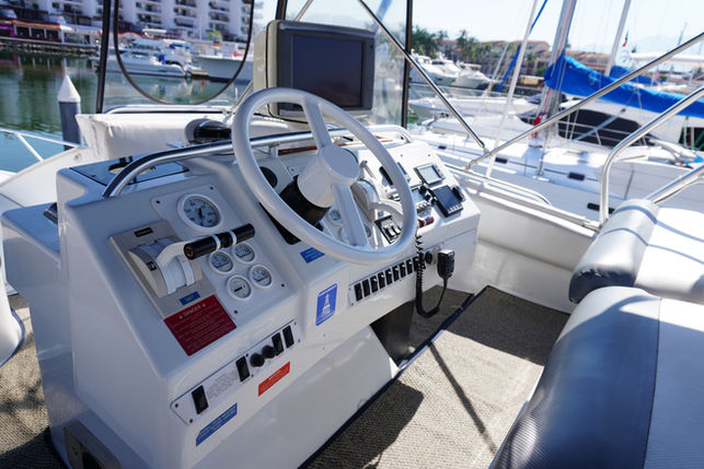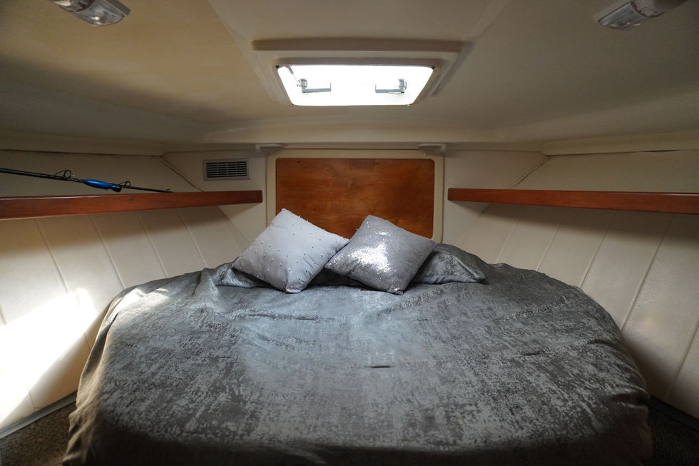 Good bluetooth sound system (FusionMarine), outdoor shower, GPS, Radar, Radio VHS, automatic pilot, speed 12 knots